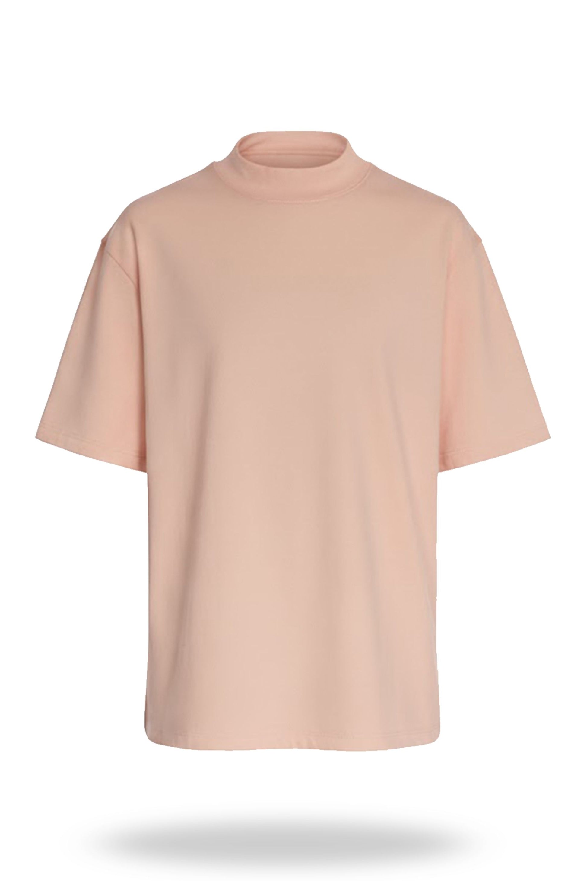 Camiseta oversize confeccionada en tejido de punto suave y de alta calidad, con un fit relajado que brinda comodidad, caída fluida y un look contemporáneo. Su cuello ligeramente elevado y mangas amplias aportan una silueta moderna, ideal para combinar con pantalones estructurados o prendas más casuales. Un básico versátil que se adapta a distintos estilos y ocasiones sin perder su esencia minimalista y sofisticada.