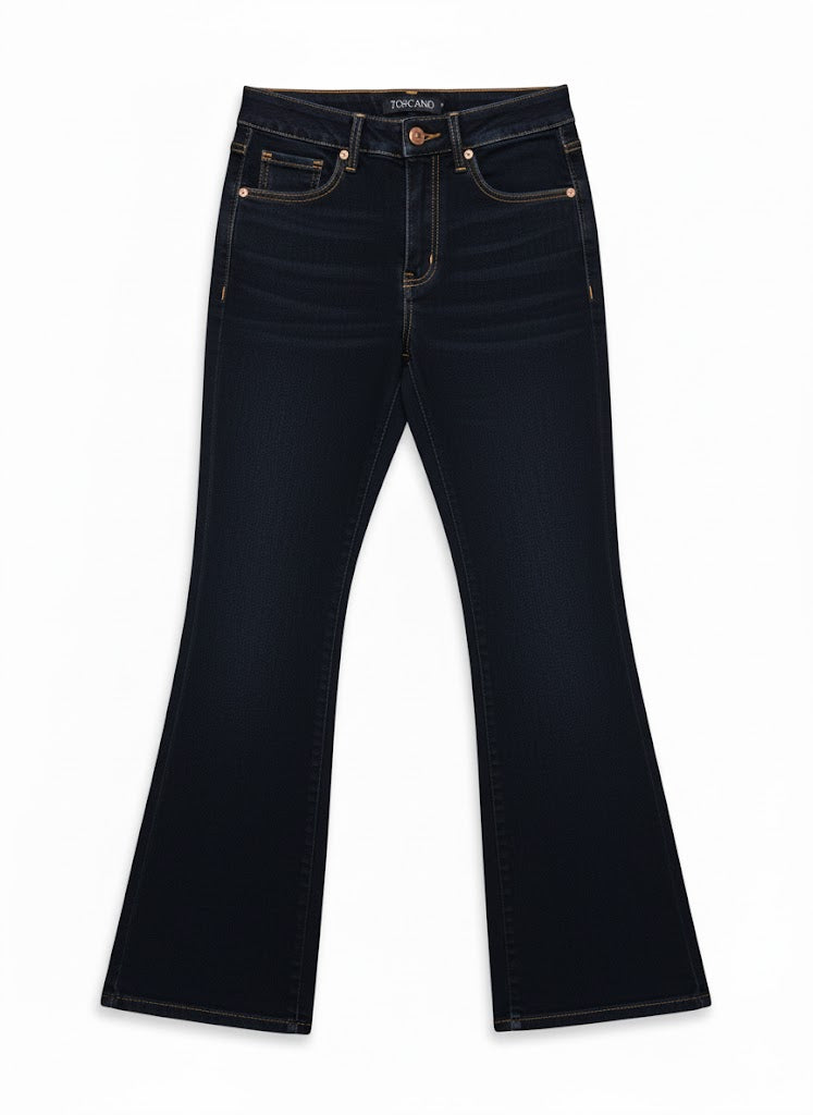 Pantalón de corte palazzo, confeccionado en denim de alta calidad. Su diseño minimalista cuenta con tiro alto y un cierre de cremallera y botón que estiliza la figura. La caída es fluida y su estructura denim oscura le confiere una elegancia atemporal. Es una pieza esencial y versátil que, gracias a su silueta amplia y su tejido premium, eleva inmediatamente cualquier look, siendo ideal para equilibrar conjuntos casuales y sofisticados.